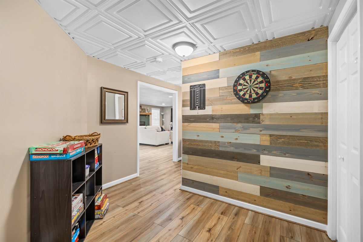 Downstairs secondary living space is a fully loaded game room with a separate kitchen.